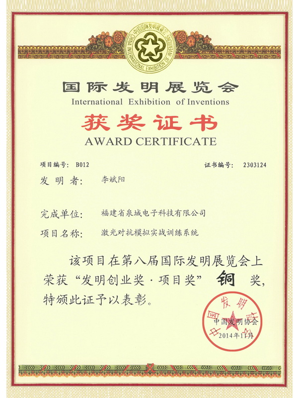 2014年國(guó)際發(fā)明展覽會(huì)銅獎(jiǎng)